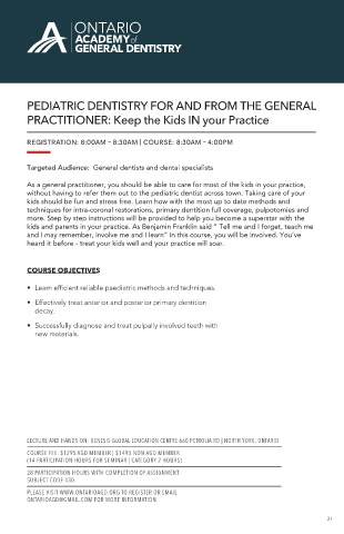 NORTH YORK APRIL 4-5 2025 FRIDAY AND SATURDAY PEDIATRIC DENTISTRY FOR AND FROM THE GENERAL