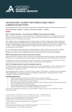 dentistry. You’ll explore current materials and bonding systems, weighing the pros and cons of each. Dr.