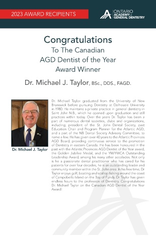 Dr. Michael Taylor on the Canadian AGD Dentist of the Year
