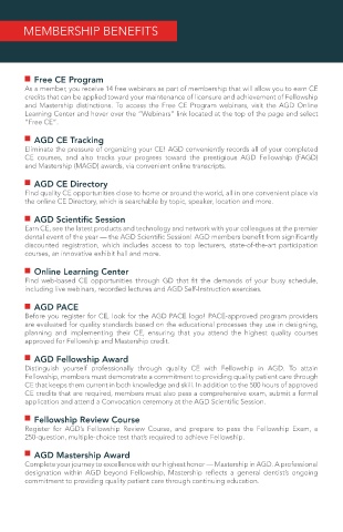 and Mastership distinctions. To access the Free CE Program webinars, visit the AGD Online