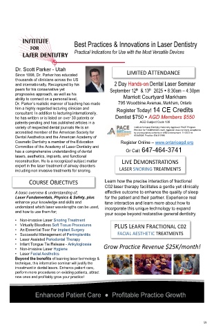 and internationally. Recognized by his 2 Day Hands-on Dental Laser Seminar